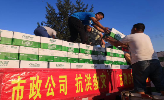 2018年8月25日,由公司董事長、總經(jīng)理王曉軍帶隊,將738箱礦泉水、7950斤掛面和114箱方便面等價值48906元的應(yīng)急救災(zāi)生活物資送到受災(zāi)嚴(yán)重的營里鎮(zhèn)周家村和吳家村賑濟(jì)災(zāi)民。
