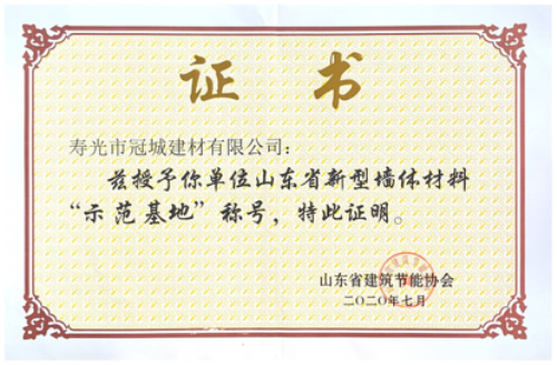 公司曾榮獲濰坊市守合同重信用企業(yè)、新型城鎮(zhèn)化建設(shè)**單位、壽光市依法行政監(jiān)督**單位等榮譽(yù),先后通過了質(zhì)量管理體系認(rèn)證、知識產(chǎn)權(quán)管理體系認(rèn)證。山東省新型墻體材料示范基地、山東省建筑節(jié)能協(xié)會常務(wù)理事、山東省建筑節(jié)能協(xié)會新型墻體材料分會副會長單位。